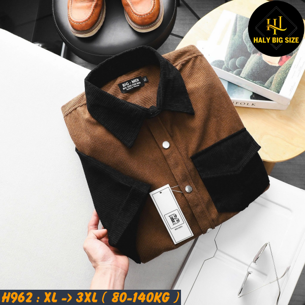 Áo sơ mi nam big size nhung tăm phối màu H962